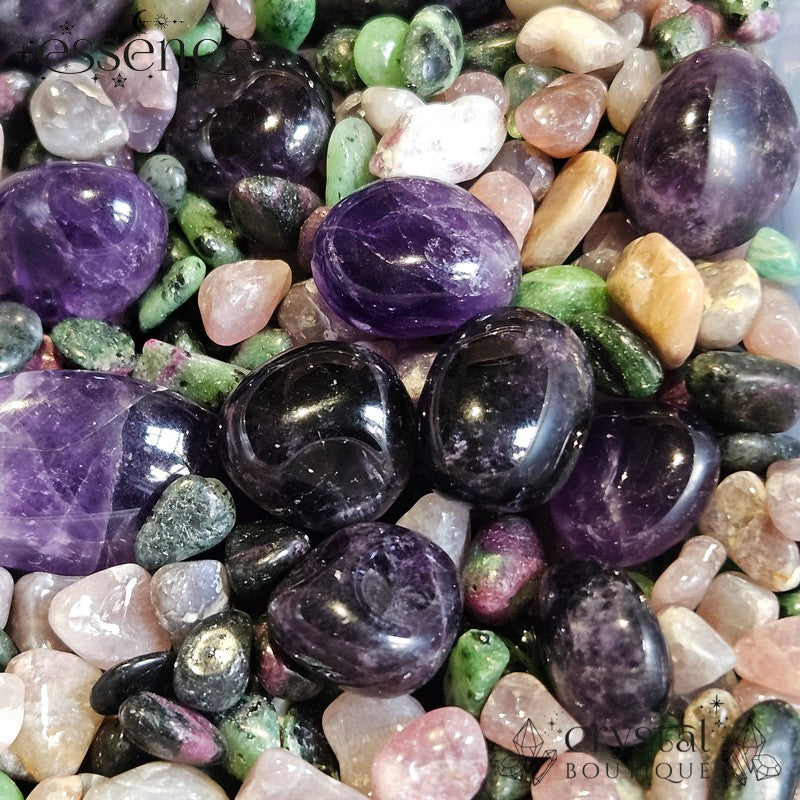 This Vampire’s Kiss blend is a hauntingly beautiful mix of crystals chosen for their passion, mystery, and protective energy. Each set includes: